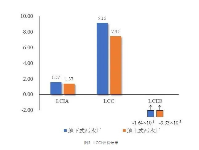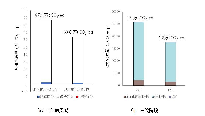 地下式污水處理廠產(chǎn)生的綜合環(huán)境與投資影響(LCCI)較同等規(guī)模與工藝的地上式污水處理廠高出21%,全生命周期碳排放較地上式高出36.5%。即使地下廠地面部分留作綠地園林景觀,所產(chǎn)生生態(tài)效益也無(wú)法抵消對(duì)環(huán)境產(chǎn)生的總的負(fù)面影響。