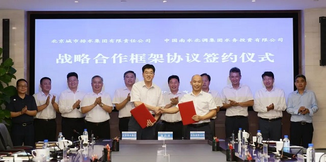 9月19日,北京排水集團與中國南水北調(diào)集團水務投資公司簽署戰(zhàn)略合作協(xié)議。中國南水北調(diào)集團水務投資公司黨委書記、董事長樊新中,黨委副書記、副總經(jīng)理杜國志,副總經(jīng)理劉凱、鄭少博、畢波,北京排水集團黨委書記、董事長張建新,黨委副書記、總經(jīng)理張榮兵,副總經(jīng)理鄺諾參加簽約儀式。