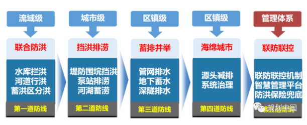 王浩從流域統(tǒng)籌視角出發(fā),以流域為單元,提出城市洪澇綜合治理的“五道防線”,即上游攔蓄、堤防工程、排水管網(wǎng)、建設(shè)海綿城市和聯(lián)防聯(lián)控。