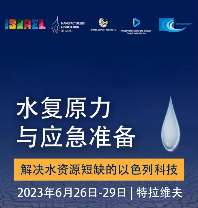 中國(guó)城鎮(zhèn)供水排水協(xié)會(huì)受以色列經(jīng)濟(jì)與產(chǎn)業(yè)部及駐華使館的邀請(qǐng)于2023年6月26-29日派員參加了在以色列第二大城市特拉維夫舉行的“2023以色列水復(fù)原力與應(yīng)急準(zhǔn)備大會(huì)”( the Water resilience & Emergency preparedness event 2023 in Tel Aviv)。本次活動(dòng)是以色列面向國(guó)際社會(huì)集中展示其解決水資源短缺以及應(yīng)對(duì)突發(fā)事件保證正常供水方面的技術(shù)的一次活動(dòng)。“水復(fù)原力”是指水在使用之后通過(guò)一系列水處理技術(shù)使其恢復(fù)到原狀態(tài)的能力,在這個(gè)理念指導(dǎo)下,污水及海水都可以通過(guò)技術(shù)成為水資源,這也是以色列在荒漠國(guó)土上生存發(fā)展的技術(shù)保障。