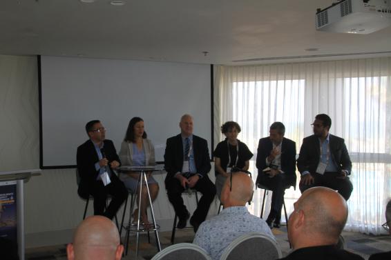 主題報(bào)告后由以色列Mekorot工程技術(shù)和戰(zhàn)略規(guī)劃副總裁Yossi Yaacoby先生主持了主題為“通過(guò)創(chuàng)新增強(qiáng)韌性”的小組討論,來(lái)自以色列水務(wù)局安全應(yīng)急和網(wǎng)絡(luò)高級(jí)部門經(jīng)理Danny Lacker先生、以色列創(chuàng)新局初創(chuàng)部門氣候與健康高級(jí)總監(jiān)Hagit Schwimmer女士、法國(guó)國(guó)家水工業(yè)與企業(yè)聯(lián)盟(UIE)董事會(huì)蘇伊士企業(yè)風(fēng)險(xiǎn)投資總監(jiān)Jean-Luc Venture先生、巴西國(guó)家水務(wù)和衛(wèi)生局水務(wù)和社會(huì)經(jīng)濟(jì)研究主管Felip Tavares先生、美國(guó)ICI基金聯(lián)合創(chuàng)始董事總經(jīng)理Gili Elkin女士參加了討論。