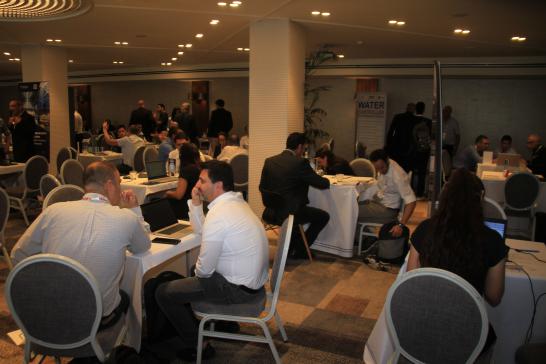 27日下午進(jìn)行了企業(yè)B2B一對(duì)一洽談環(huán)節(jié),根據(jù)會(huì)議注冊(cè)時(shí)參會(huì)嘉賓選擇確定的洽談名單逐一進(jìn)行。參加B2B交流的以色列企業(yè)有以色列最大的水務(wù)公司Mekorot、海水淡化技術(shù)工程公司IDE、空氣制水技術(shù)公司W(wǎng)atergen、智慧水務(wù)公司KANDO、基于人造衛(wèi)星的管道漏損探測(cè)公司ASTERRA、管網(wǎng)漏損檢測(cè)及評(píng)估公司Aquarius Spectrum、水質(zhì)安全實(shí)時(shí)檢測(cè)公司CyWat公司、過(guò)濾技術(shù)公司Amiad、新型生物處理填料公司AqWise、無(wú)線自動(dòng)抄表數(shù)據(jù)網(wǎng)絡(luò)公司Arad、紫外線消毒技術(shù)公司Atlantium、高質(zhì)量液壓控制閥公司BERMAD、強(qiáng)化生物處理SBP膠囊公司BioCastle、免開(kāi)挖自動(dòng)漏損修復(fù)公司Curapipe等。