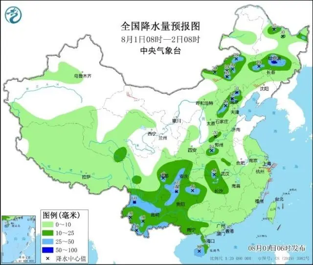 中央氣象臺預計,8月1日夜間開始至4日,內蒙古東部、東北地區(qū)多陣雨或雷陣雨天氣,其中內蒙古東北部、吉林中東部、黑龍江東南部等地部分地區(qū)有大到暴雨,局地有大暴雨;上述部分地區(qū)伴有短時強降水,局地將有雷暴大風或冰雹天氣。