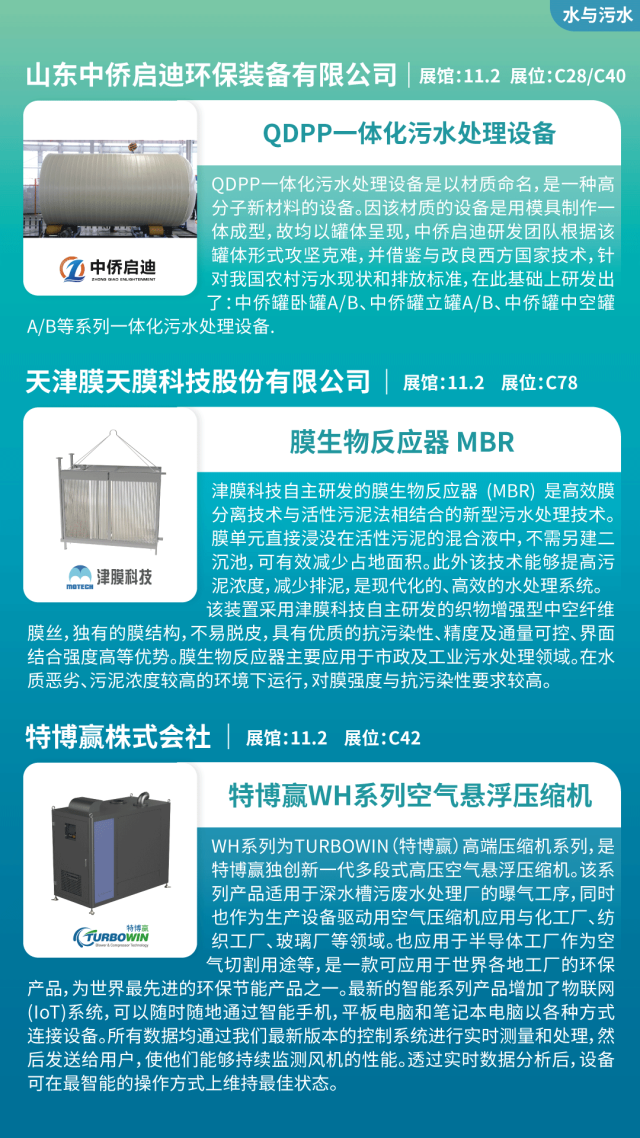 污泥干化機、污泥脫水機、過濾機、懸浮風機、壓縮機、一體化污水處理設備、水處理藥劑、智能廢水處理系統、凈水器、活性催化劑、雨水收集回用、平板膜、超濾膜等。
