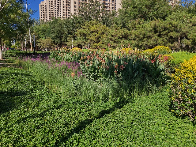 搖曳的美人蕉、綻放的千屈菜、翠綠的馬藺……這些植被在點“靚”環(huán)境的同時,也承擔起了輔助調蓄和凈化徑流雨水等實際功能。自2016年4月,天津市獲批國家第二批海綿城市建設試點以來,天津高新區(qū)持續(xù)推進海綿城市建設走向縱深,渤龍湖科技園綠地海綿改造項目建設已取得顯著進展。