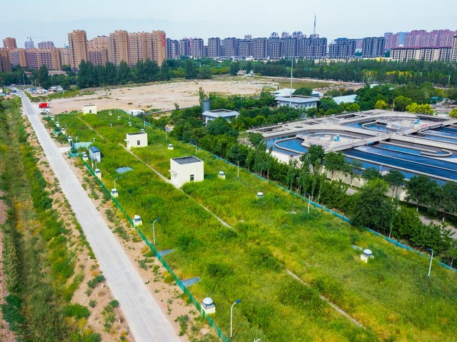 此外,銀川市針對水資源短缺問題,通過在城市新建或改造建筑、廣場、公園綠地等項目中配建雨水集蓄利用設施,對分散收集的雨水進行就地利用;通過CSO調蓄池將雨季合流水進行集中收集,經過再生水廠凈化后用于溝道生態補水,將節省下來的水源用來滿足工業生產。針對部分土壤鹽堿化問題,銀川市積極探索創新建設方式,在公園綠地項目中選用耐鹽耐堿植物、埋設滲透管等,為鹽堿地區建設海綿城市提供了示范樣板。