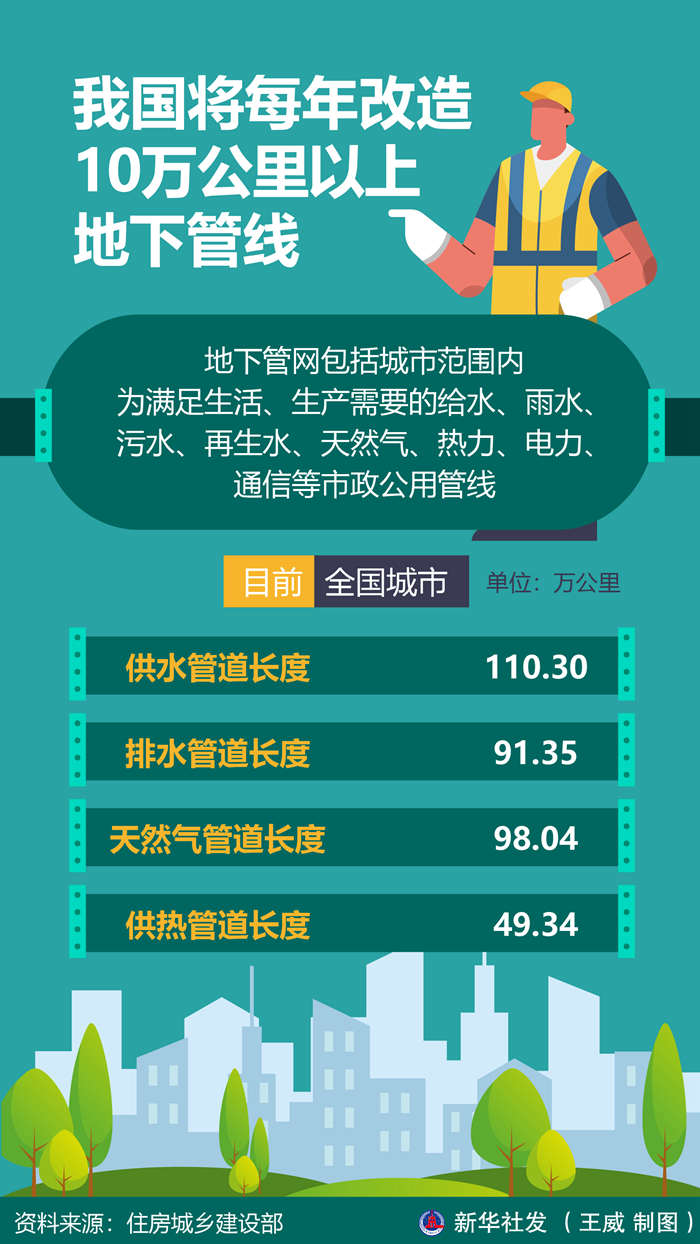 地下管網改造,是市政工程,更是民生工程。記者近日從住房城鄉(xiāng)建設部了解到,未來,我國將每年改造10萬公里以上地下管線。