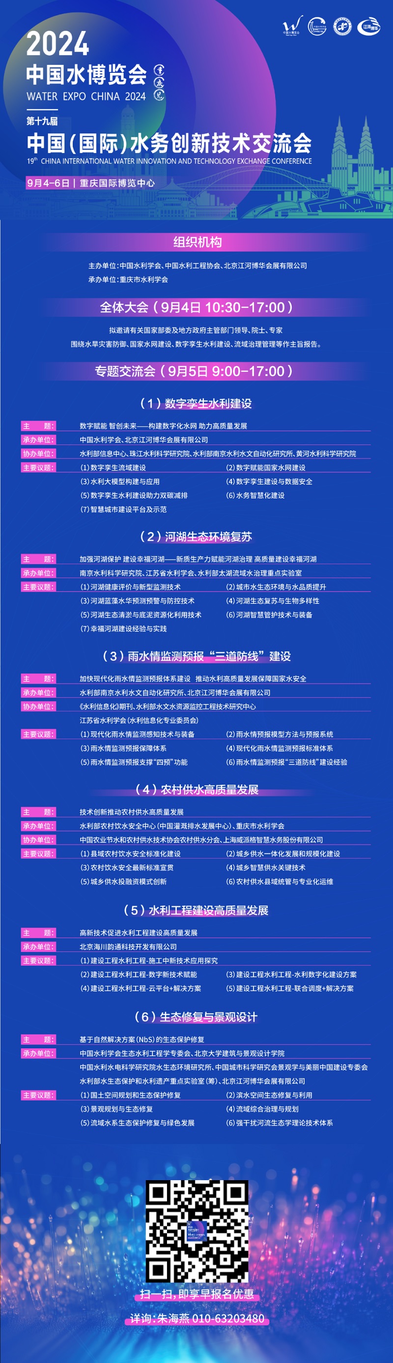 六大主題分會聚焦水利行業熱點,盡在9月4-6日,第十九屆中國(國際)水務創新技術交流會