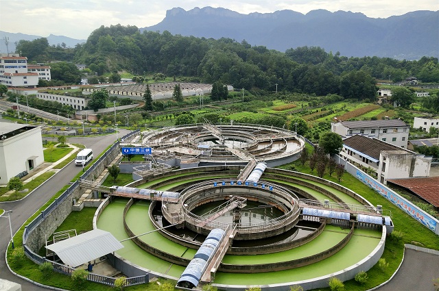 湖北宜昌,在宜昌市夷陵區(qū)太平溪鎮(zhèn)許家沖村,污水處理廠正在對太平溪集鎮(zhèn)及周邊收集來的污水進行凈化處理。