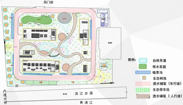 蒙自泵站擁有三個(gè)“第一”——上海第一座多功能生態(tài)排水泵站,第一座開(kāi)放式的花園泵站,是全國(guó)第一座排水文化公園。上海市排水公司負(fù)責(zé)人介紹,蒙自泵站除了雨水泵、截流泵、調(diào)蓄池等排水設(shè)施外,還用雨水花園、透水道路等不同海綿構(gòu)件形成海綿調(diào)蓄,完整地還原水在社會(huì)中“使用、排放、收集、處理、回歸”的循環(huán)過(guò)程。