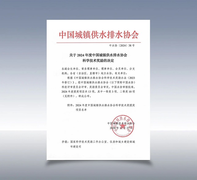 中國城鎮供水排水協會科學技術獎作為城鎮供水排水行業最具權威的獎項,旨在推動城鎮供水排水行業科技創新與技術進步,加速科技成果轉化,激勵在城鎮供水排水行業科技進步中做出突出貢獻的單位,本年度共評出獲獎項目13項,其中一等獎3項、二等獎10項。