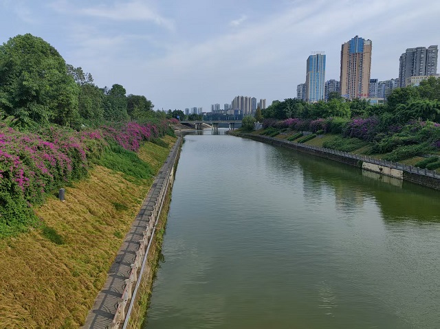 四川省資陽市對(duì)城市景觀河九曲河實(shí)施雨污分流改造等整治。圖為整治后的九曲河。中環(huán)報(bào)記者文雯攝
