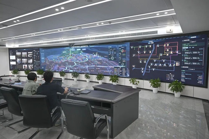 走進上海市排水管理事務(wù)中心,上海市排水運行調(diào)度監(jiān)管平臺瞬間吸引了目光。輕輕一點,匯集中心城區(qū)三大片區(qū)與各郊區(qū)的污水治理網(wǎng)絡(luò)盡收眼底;指尖一滑,遍布全市的污水處理廠完整呈現(xiàn);再一放大,縱橫交錯的城市排水管網(wǎng)、星羅棋布的排水泵站與管道水位監(jiān)測點躍然屏上。降雨多少、積水多深、污水處理廠運轉(zhuǎn)如何……一切動態(tài),都實時匯聚于此,實現(xiàn)了“一屏觀全域”。